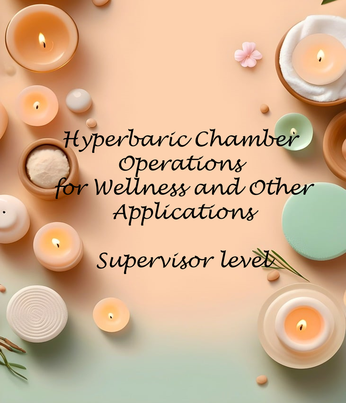 With this in mind, we have put together a series of introductory, basic, foundation, intermediate and supervisor level "training courses”, ( Ideally, to be competed in that order for best results). Thee are rather a compilation of knowledge development and working material, for those who have perhaps just bought a chamber, or those who have just joined an existing organisation and wish to be brought up to speed on a range of topics likely to come up, and even those who have been operating for a while who wish to review their operating material and knowledge base. The material is useful to wellness practitioners as well as medical personnel. Annual review is always seen as pro-active and refreshers are common in this line of work.